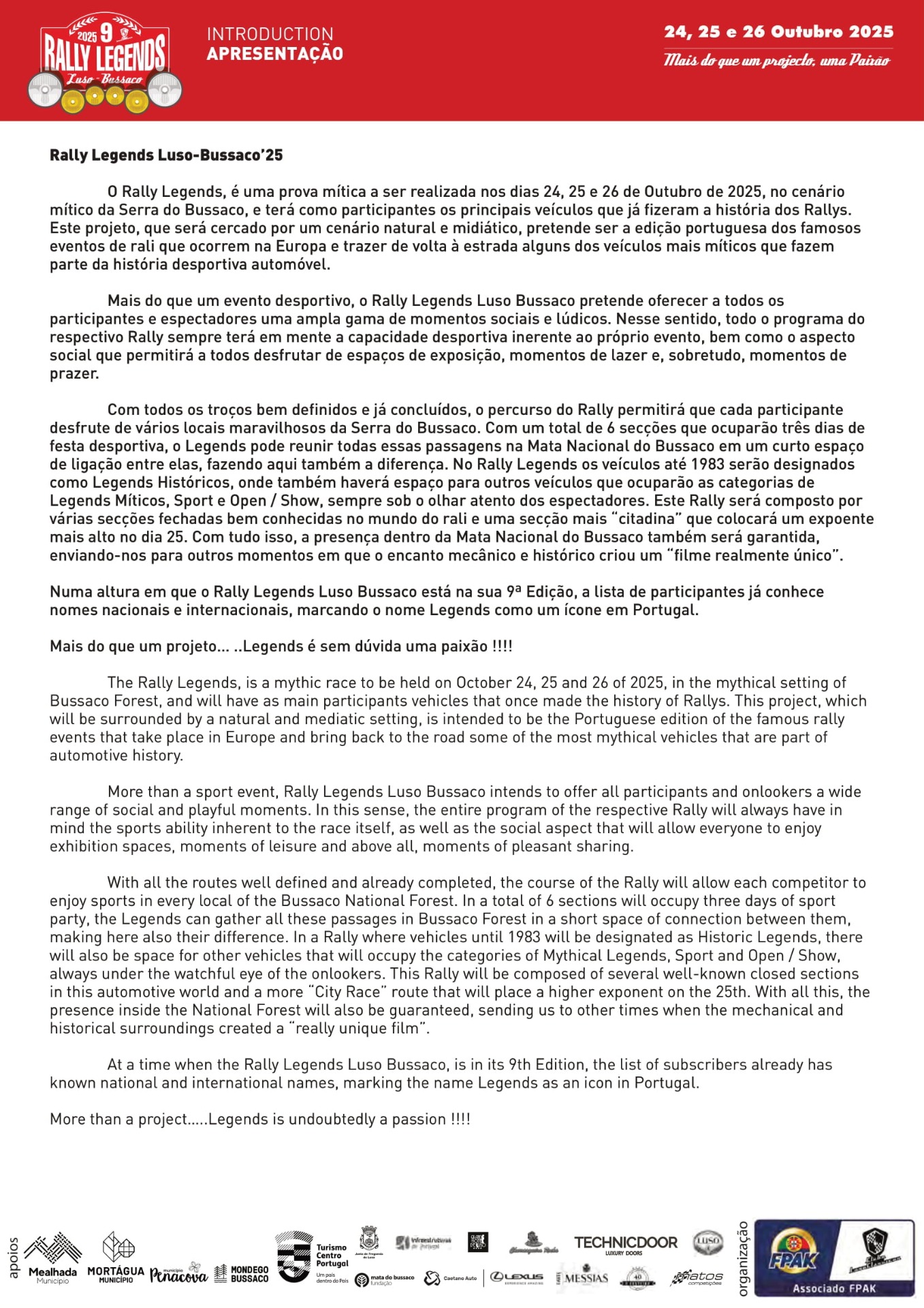 Rally Legends Luso - Bussaco 24, 25 e 26 de Outubro´25