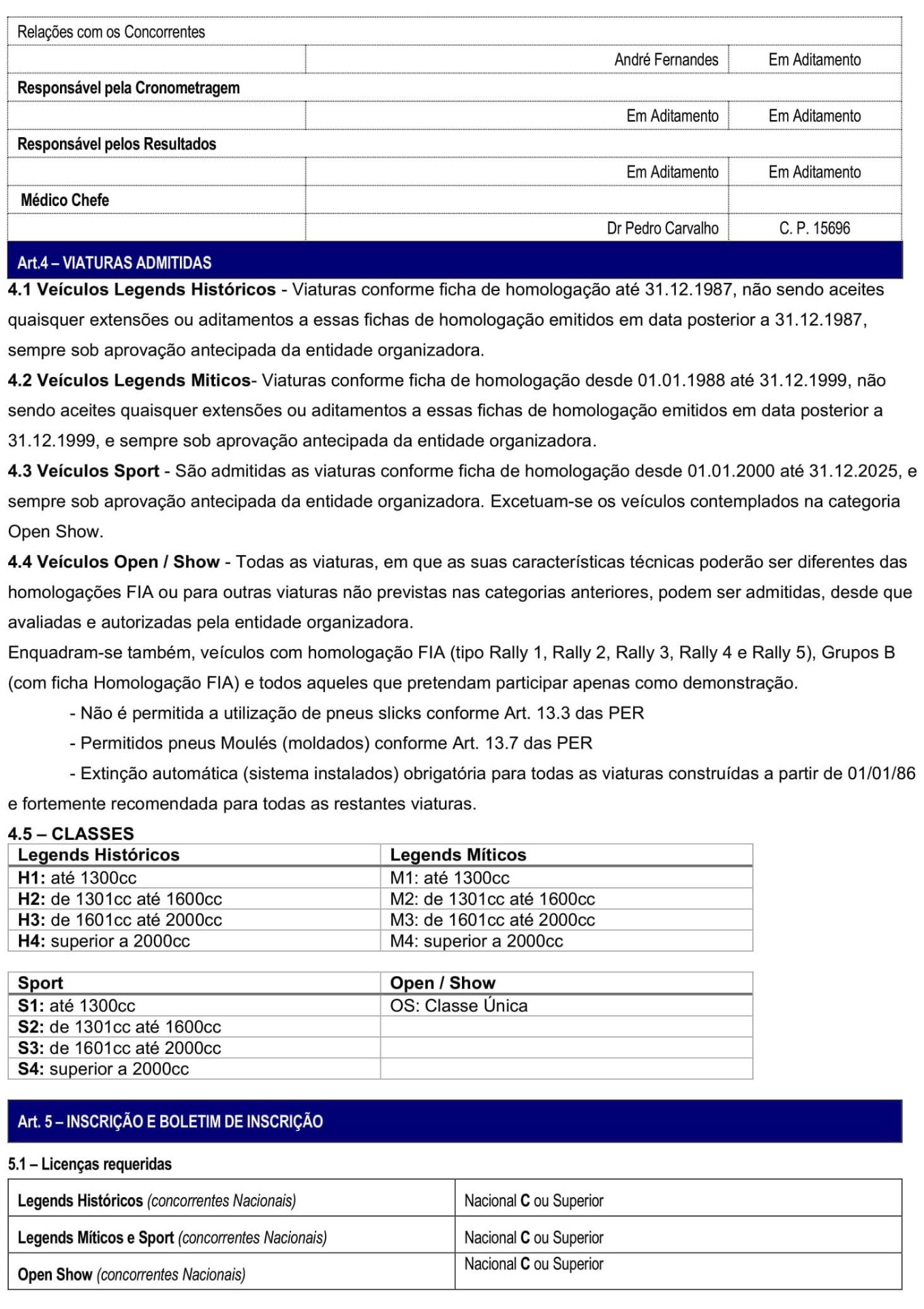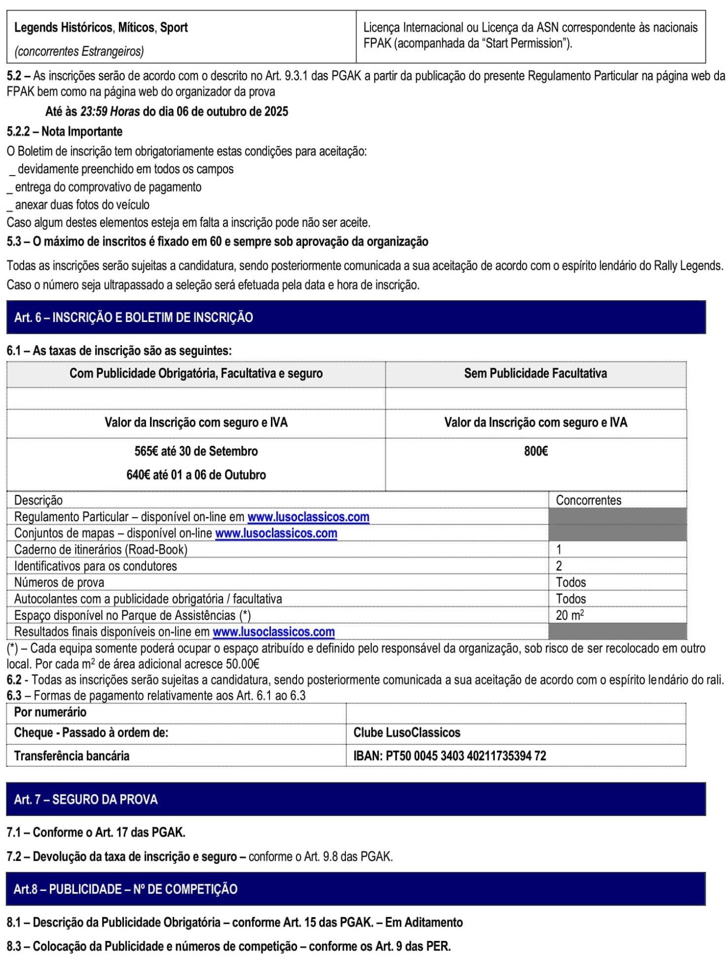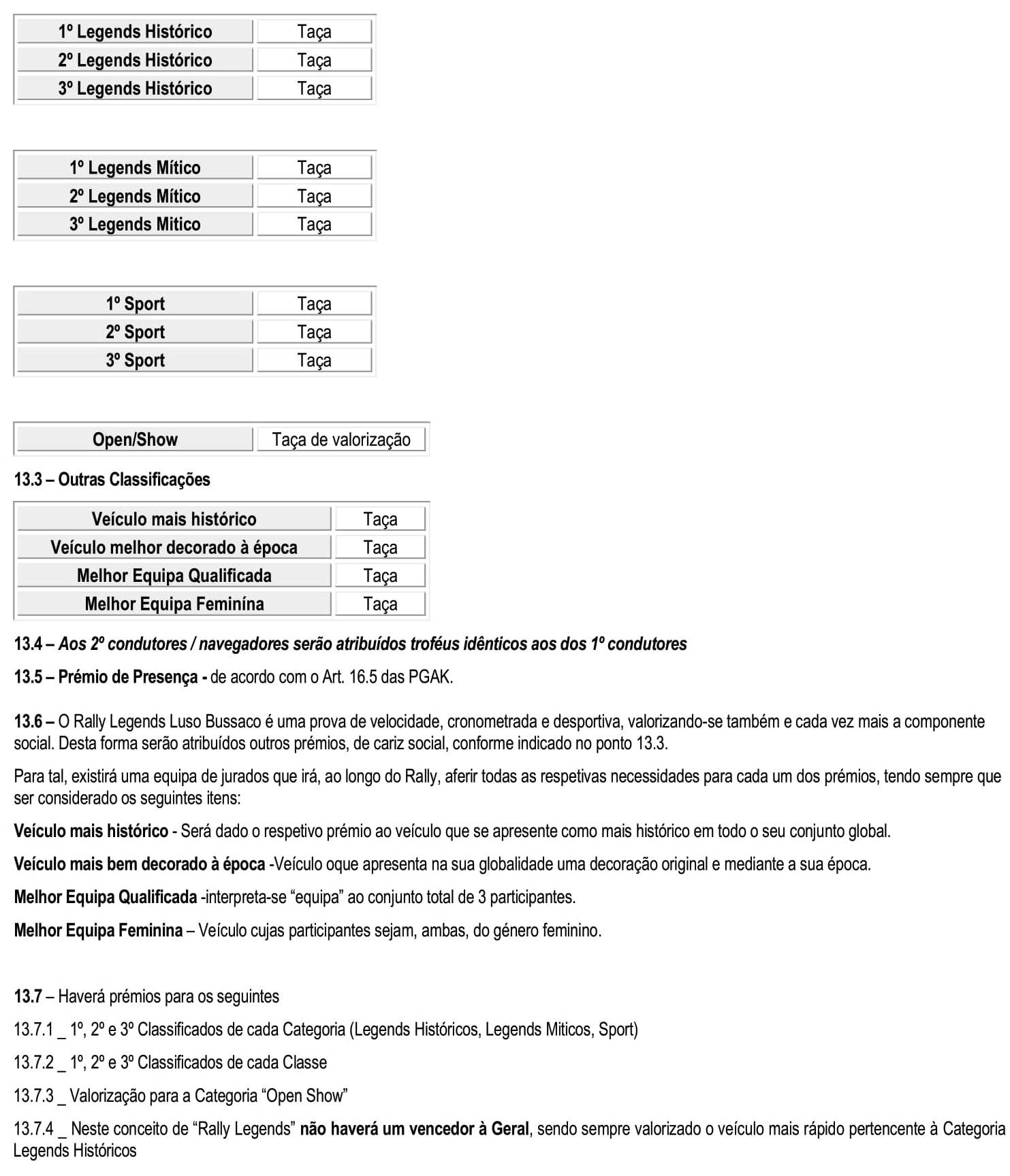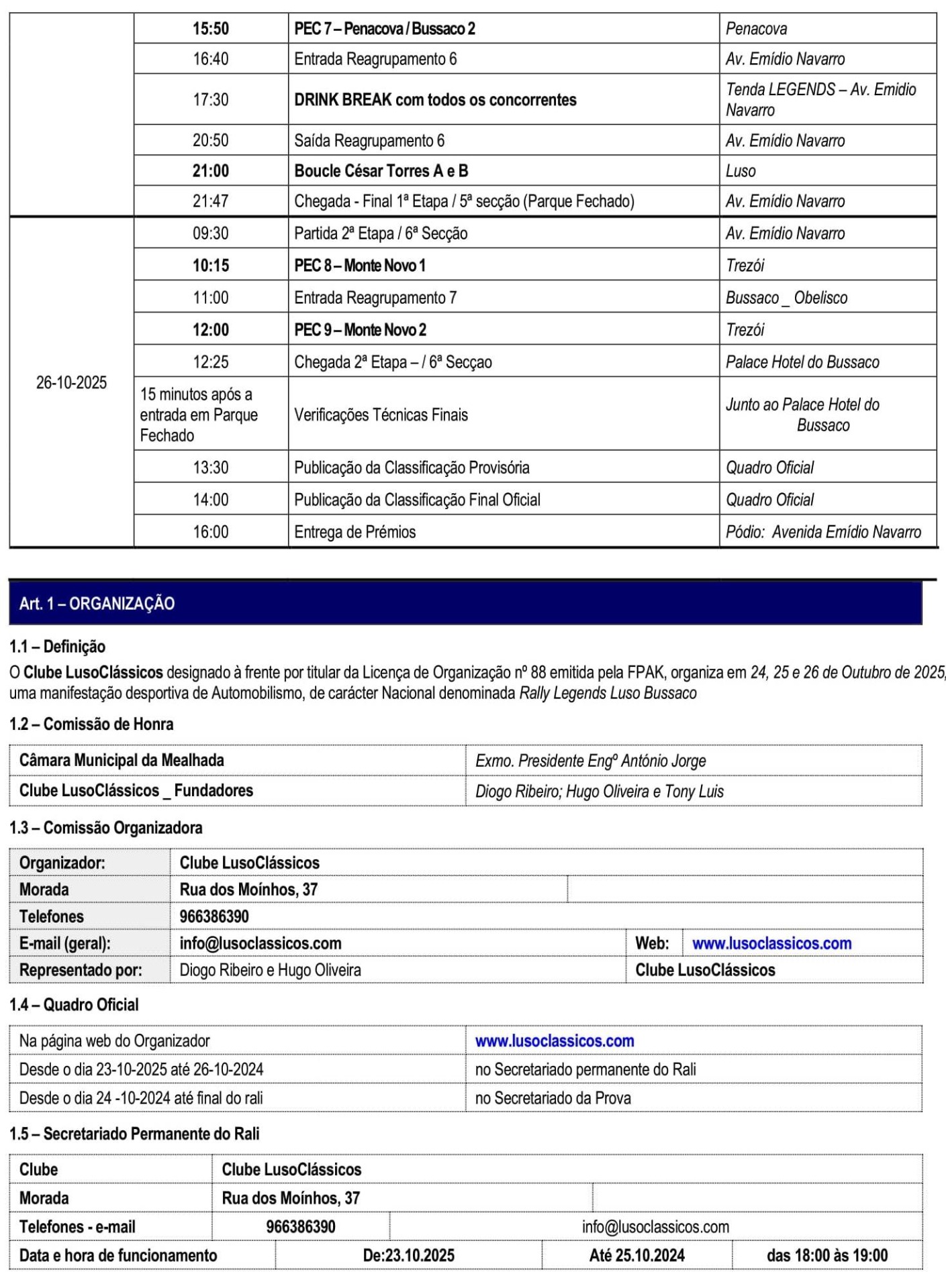 Regulamento Particular + Guia Rally Legends Luso-Bussaco + Programa