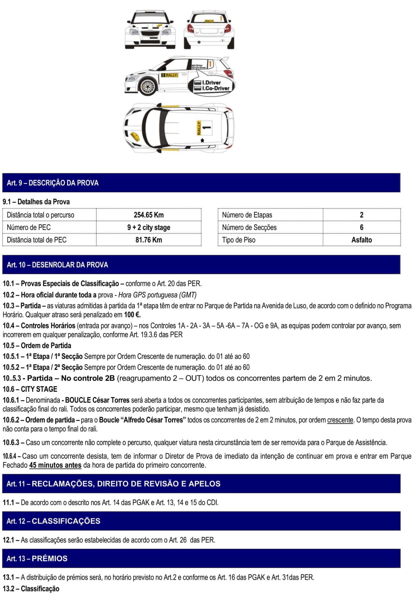 13.40 horas - Partida do 4º Troço - Traçado original Rali Portugal (duas passagens) (Penacova - Bussaco)